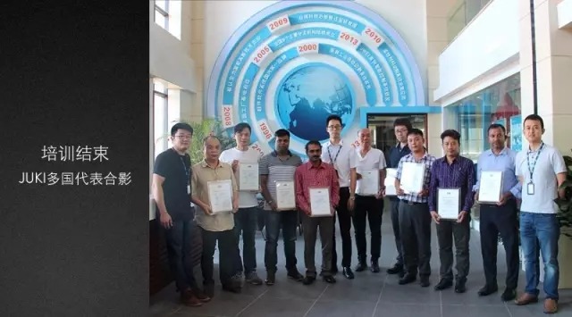 7月24日,由JUKI日本重機派出的首批由十余人組成的多國代表團蒞臨經緯總部,開展了為期一周的交流學習,包括經緯設備使用,軟件制作,以及模板工藝技術等內容。為鞏固學習成果,經緯特設相關考核,并認證頒發相應結業證書。
