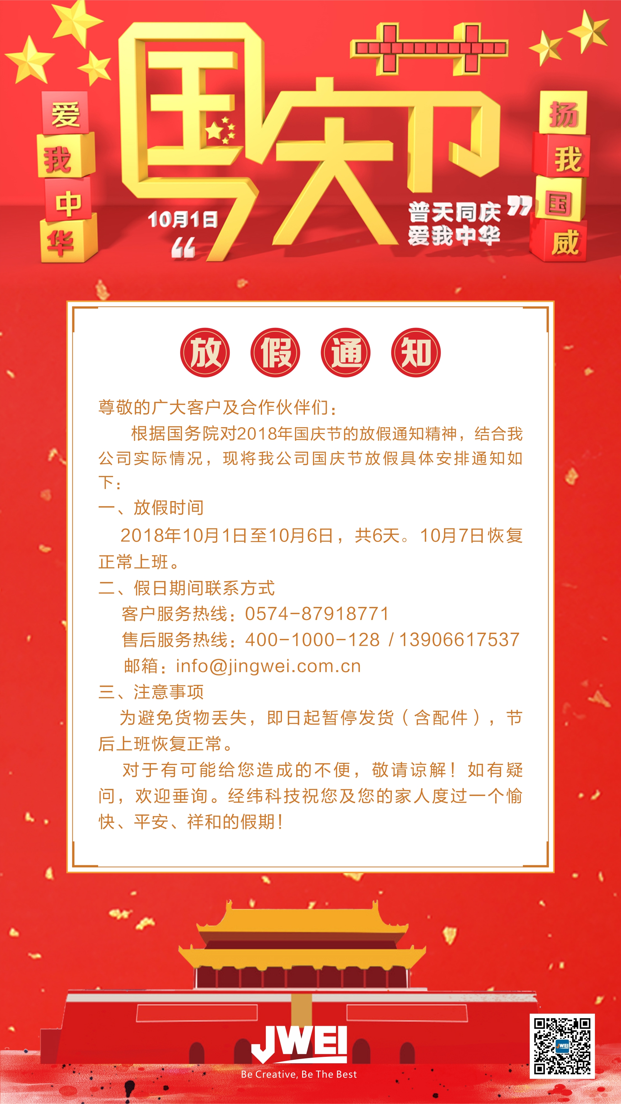 2018年國慶節經緯科技放假通知