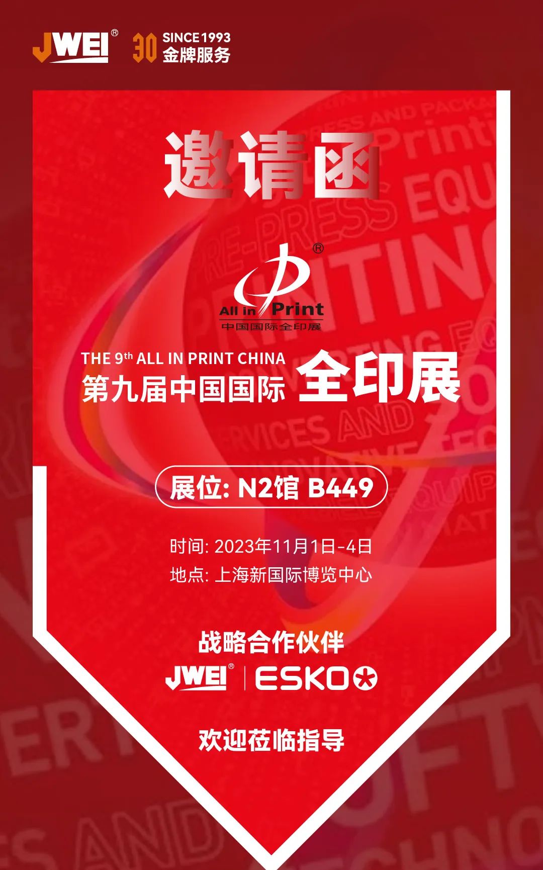 2024年11月1日-4日,第九屆中國國際全印展將在上海新國際博覽中心舉行,經緯數控(展位號:N2B449)攜手戰略合作伙伴——包裝印刷及產品外包裝結構設計的行業領跑者ESKO艾司科共同