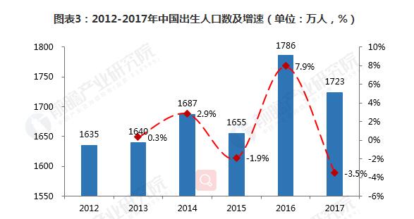 一方面,0-6歲孩童在未來幾年內將進入小學接受義務教育,這部分群體將成為校服未來幾年的新增消費者。2012-2017年,我國新增出生人口數總體呈波動增加的趨勢。2016年,受2015年剛剛開放二孩政策的影響,促使出生人口顯著增加,達到1786萬人,同比增長了7.9%,增速創下自2011年以來的歷史新高;2017年,出生人口增速有所回落,同比下降了3.5%,但出生人口仍然多達1723萬人。總體而言,盡管近6年新增出生人口增速較慢,但由于我國人口基數較大,導致新增出生人口總體規模依然龐大,達到1.01億人,而這部分人將在未來幾年內對校服產生需求。