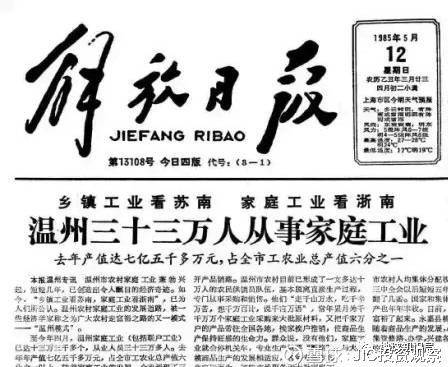 1985年,解放日報刊登《鄉鎮工業看蘇南,家庭工業看浙南,溫州33萬人從事家庭工業》,并同時配文《溫州的啟示》,至此“溫州模式”被正式提出。