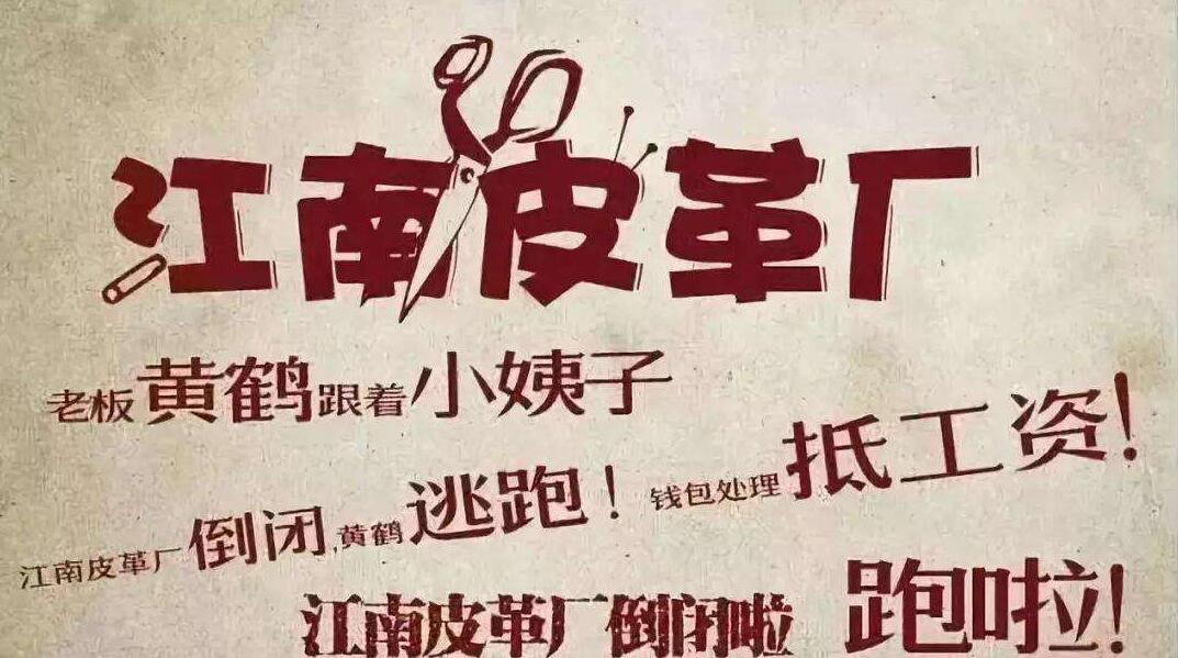 “江南皮革廠”這個名字想必大多數人都有聽說過,小街小巷大喇叭經常響起“南皮革廠倒閉了!老板黃鶴吃喝嫖賭,欠下了3.5個億,帶著他的小姨子跑了……”的聲音,攤位上擺放了大量的皮鞋、皮帶、皮包等皮革制品。這首歌影響實在太大,激發了溫州籍商人的不滿和抗議,最終以該歌作者道歉告終。這一切在吃瓜群眾眼中,不過是又一場互聯網狂歡,而中國的皮革生意確實和溫州,和浙江密不可分。