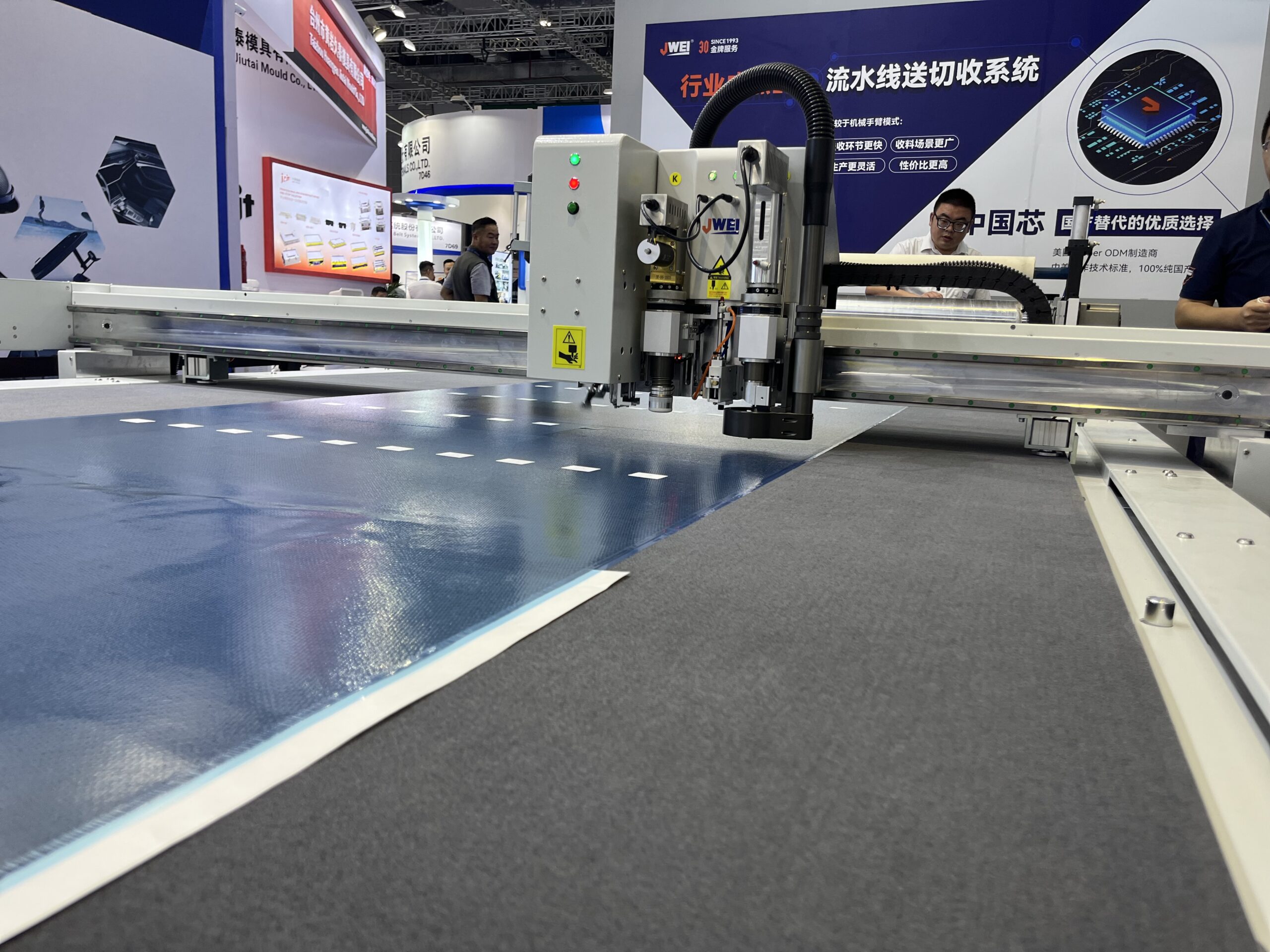 以上是關于碳纖維布裁剪機的介紹,特別強調下,此款碳纖維布裁剪機不僅能切碳纖維布,還能切割芳綸纖維、玻璃纖維布、玻璃纖維氈、碳纖維預浸料、碳纖維干布等非金屬柔性,如想了解更多信息,歡迎咨詢經緯在線客服。