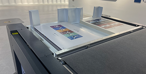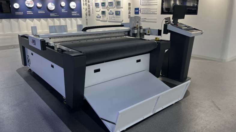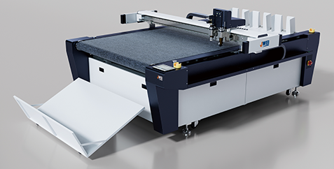 一款用于紙箱紙盒自動送切收裁切系統CB03III-1113-RM可進行紙箱紙盒打樣以及小批量生產,配有震動刀工具、壓痕輪、開槽工具等,可以迅速的完成各種紙板的壓痕切割,如瓦楞紙、蜂窩板、卡紙、PET塑料片等材料,帶有攝像頭定位系統,可精準定位裁切印刷材料,自動送切收,真正實現全程無需人守的自動化作業。