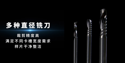 銑刀有多種直徑選擇(新增8mm直徑銑刀),一條車縫可一次裁切完成,所切樣片干凈整潔,邊沿不需二次加工,裁切精度高;