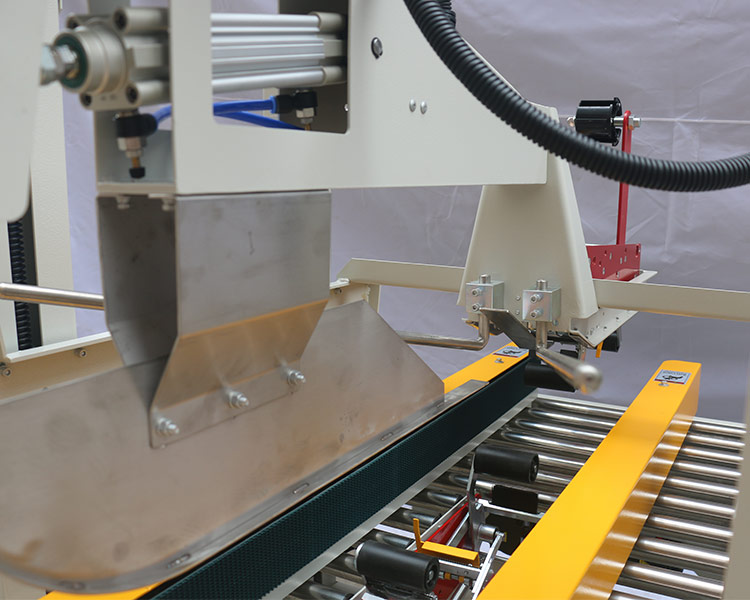 自主調(diào)節(jié)高度、寬度 根據(jù)紙箱規(guī)格手工調(diào)節(jié)機器寬度及高度,適合同一 時段同種規(guī)格紙箱封箱;
